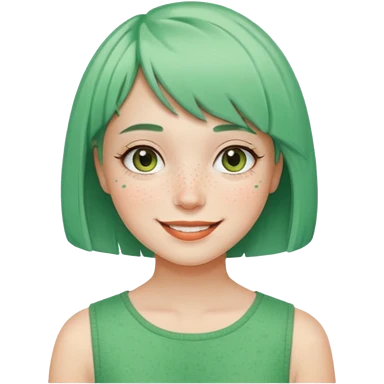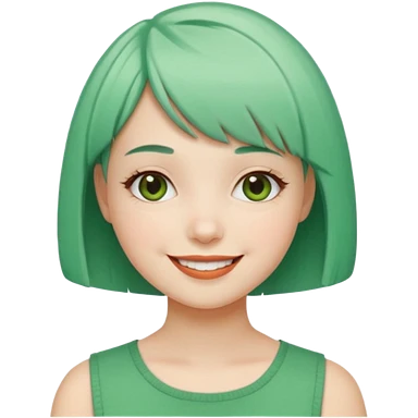 Girl with Mint Bob Cut – short green hair, cheerful smile. emoji