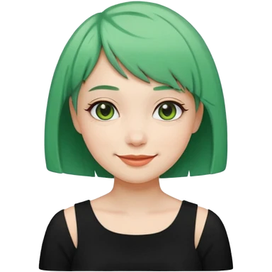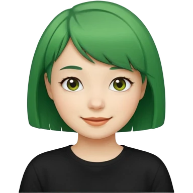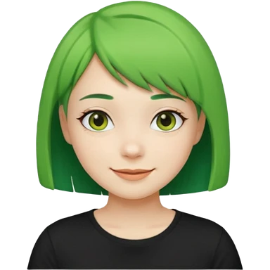 Girl with green Bob Cut – short green hair, cheerful smile, black t-shirt emoji