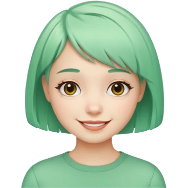 Girl with Mint Bob Cut – short pastel-green hair, cheerful smile. emoji | AI Emoji Generator