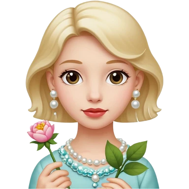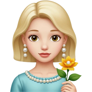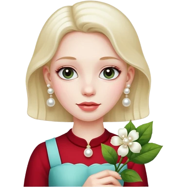 girl-with-pearl-earrings-painting holding flower emoji | AI Emoji Generator