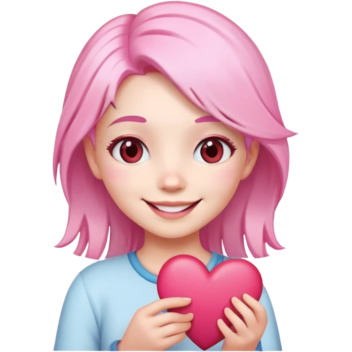 girl with pink and white hair, smiling, holding a heart, emoji style emoji | AI Emoji Generator