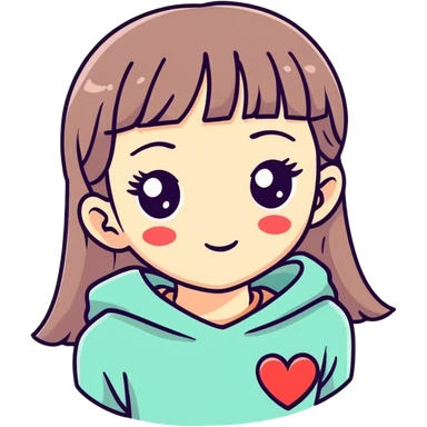 Girl with brown hair and brown eyes, straight eyebrows, long lashes, little cute nose, cute lips emoji