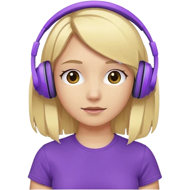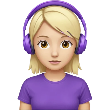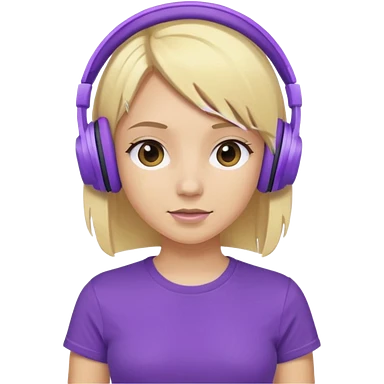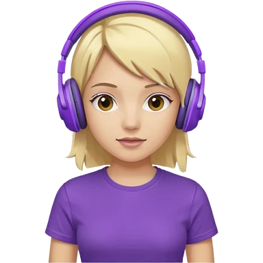 blonde girl with purple headphones and tshirt emoji