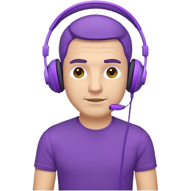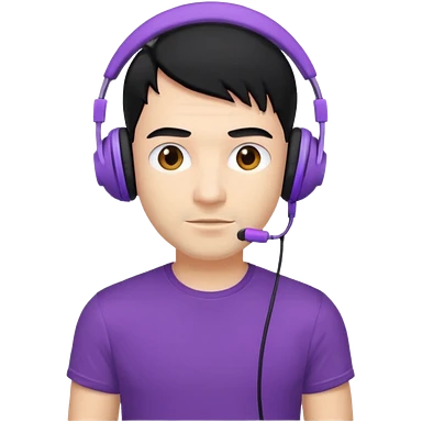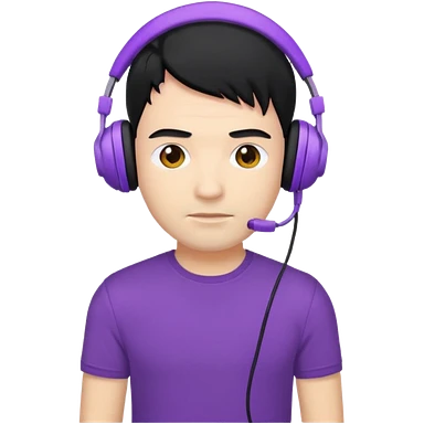 man with purple headphones and tshirt black hair emoji