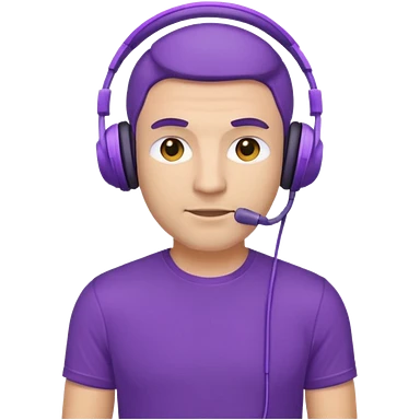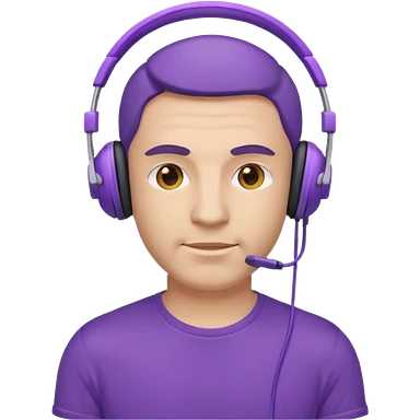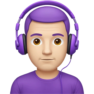 man with purple headphones and tshirt emoji