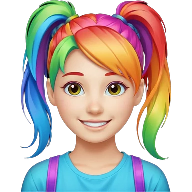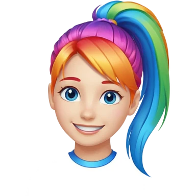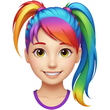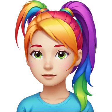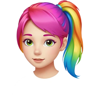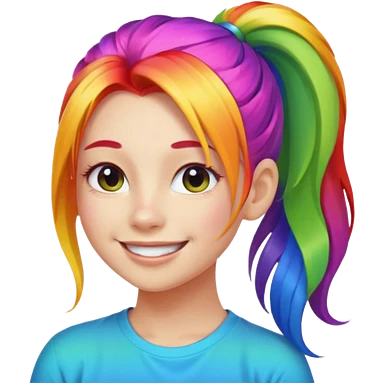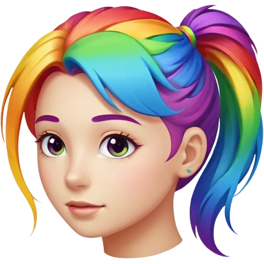 Girl with rainbow ponytail — bright gradient strands flowing emoji | AI Emoji Generator