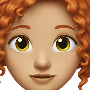 Girl with dark red curly hair and green eyes and white but tan skin emoji