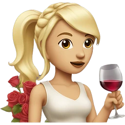 Blond girl with high ponytail and bangs holding a rose wine emoji