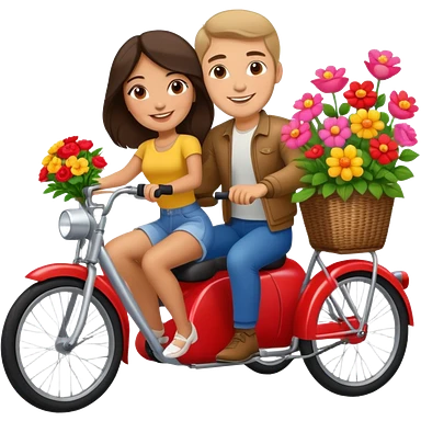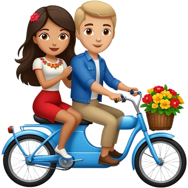 Latina girl with russian man riding a two seater bike with flowers emoji