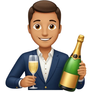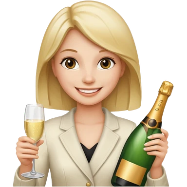 girl with Champagne bottle with party cap, only holding bottle. emoji