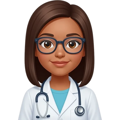 girl with brown skin and straight brown haris doctor and wear glasses emoji