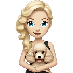 girl with straight blonde hair and blue eyes holding a fluffy poodle puppy emoji | AI Emoji Generator