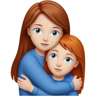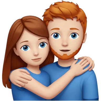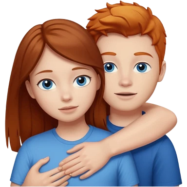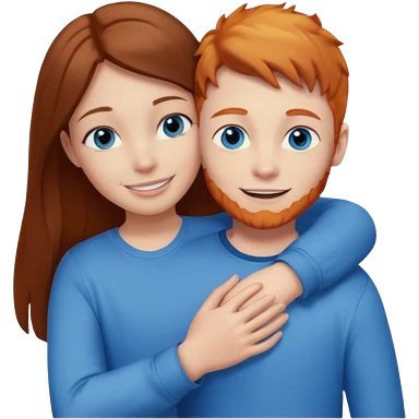 Girl with straight brown hair being hugged by ginger boy. Both have blue eyes. emoji