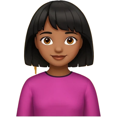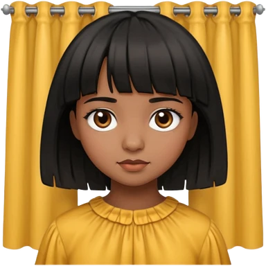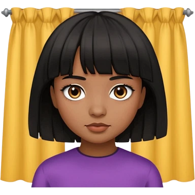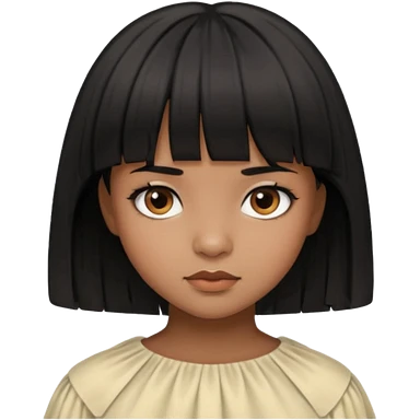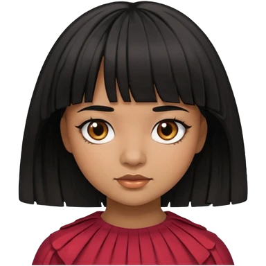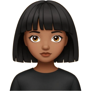 Girl that has a short black hime cut with curtain bangs, then dark brown eyes, and has a bit brown skin emoji