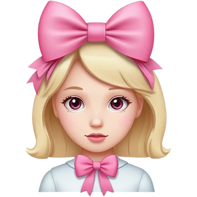 Girl with a pink bow in her hair and false eyelashes on her eyes emoji