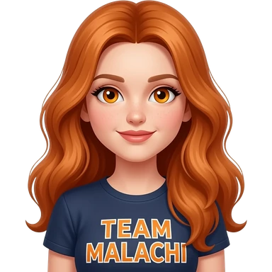 sexy girl with long ginger hair and ginger eyes a top with TEAM MALACHI written on it emoji