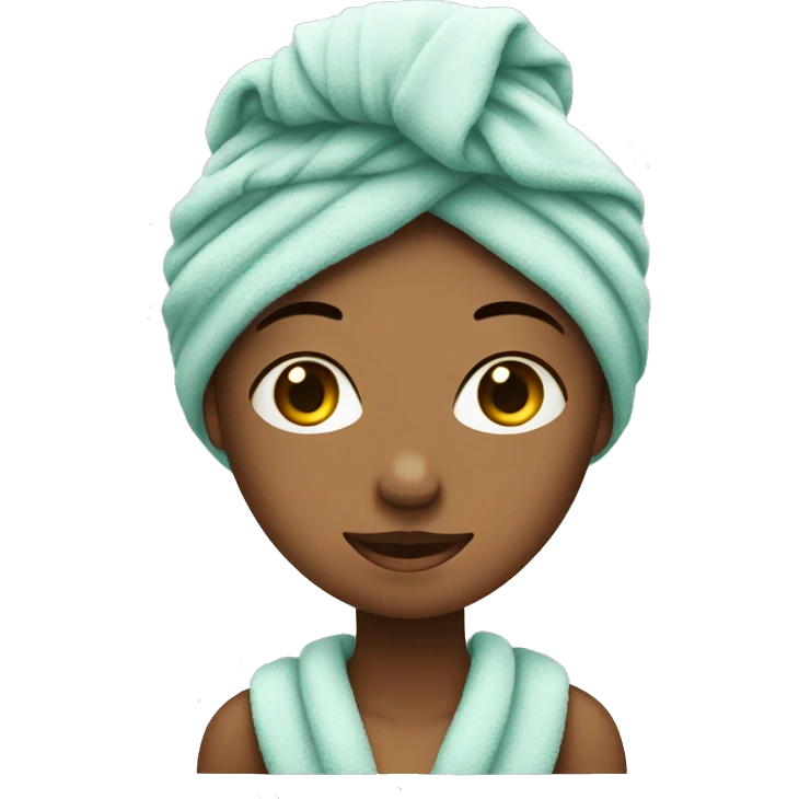 tan girl wearing a towel over her hair after shower pretty emoji