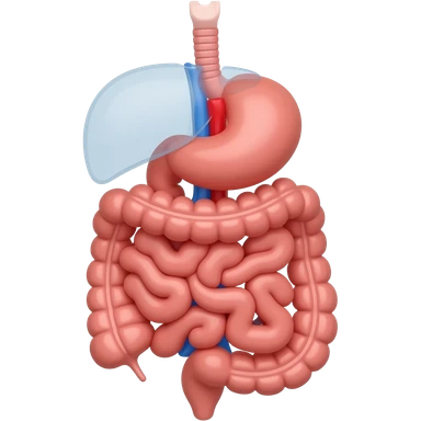 A detailed emoji of the human digestive system, showing the mouth, esophagus, stomach, and intestines, in a bright and colorful style. emoji