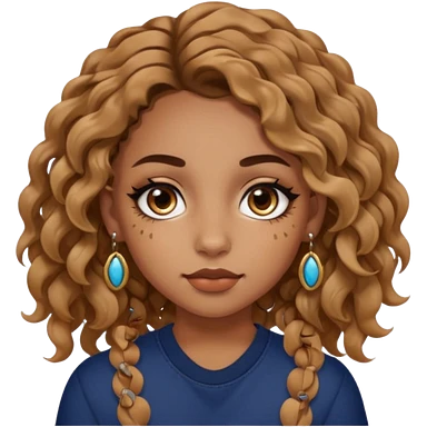 girl with wavy hair, almond shaped eyes, birthmark near her eye, tan, with lots of swag, cool, piercings emoji | AI Emoji Generator