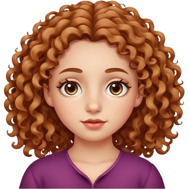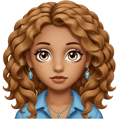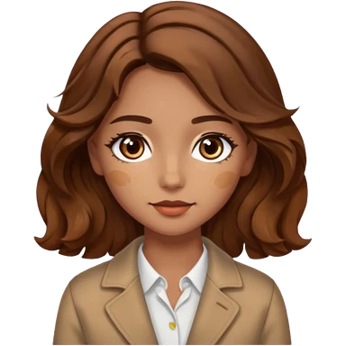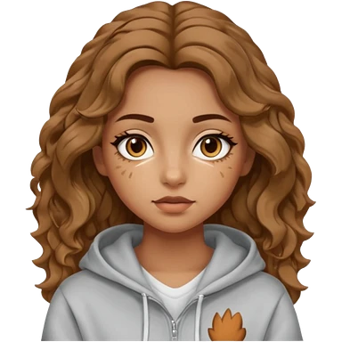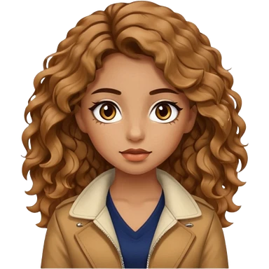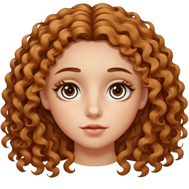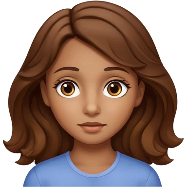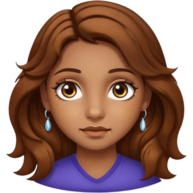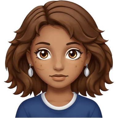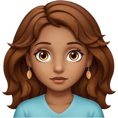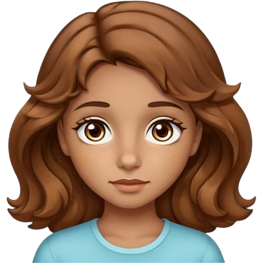 a girl with brown hair, white skin, long eyelashes, brown eyes, almond shaped eyes, wavy hair emoji