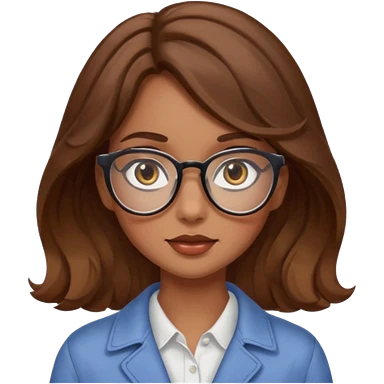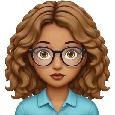 girl with wavy hair, almond shaped eyes, birthmark near her eye, tan, with swag, and glasses emoji