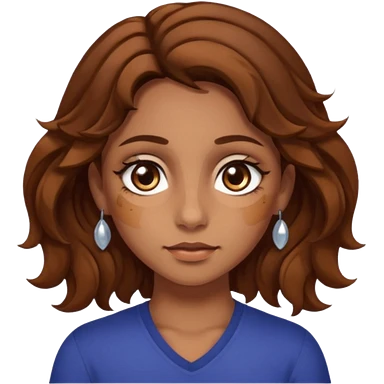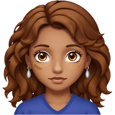 girl with wavy hair, almond shaped eyes, birthmark near her eye, tan emoji