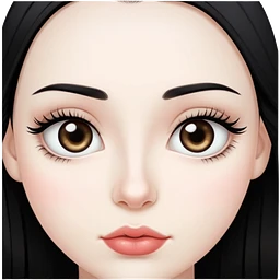 Girl with dark black hair,pale skin,good lips,good nose,big dark eyes and long eyelashes and tiny dark eyebrows, emoji