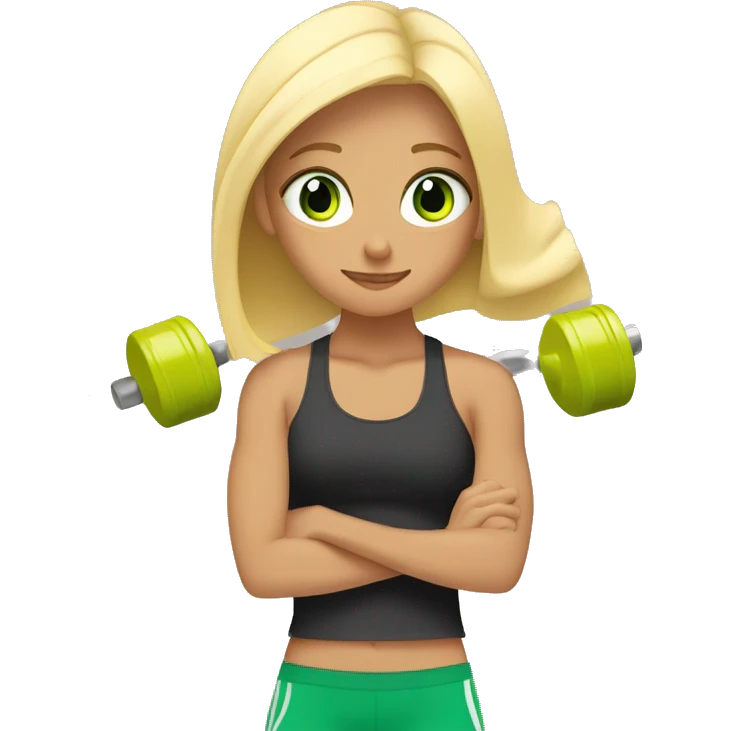 girl working out green eye blonde hair lifting weights emoji | AI Emoji Generator