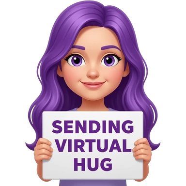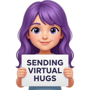 girl with long purple hair with a SENDING VIRTUAL HUGS sign emoji