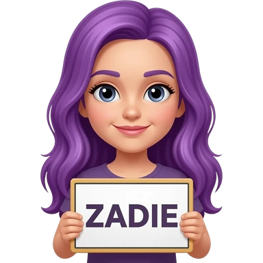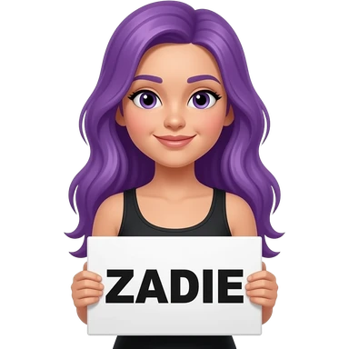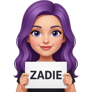 girl with long purple hair with a ZADIE sign emoji