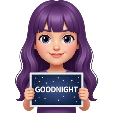 girl with long purple hair with a GOODNIGHT sign emoji