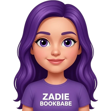 girl with long purple hair with a ZADIE BOOKBABE sign emoji