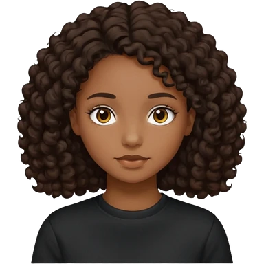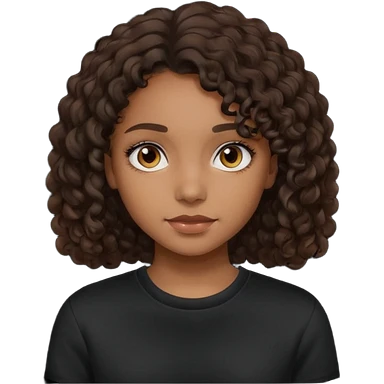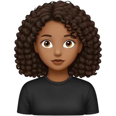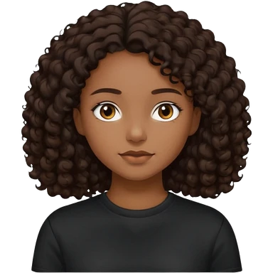 girl with brown skin, dark curly brown hair shoulder length and plain black crewneck t-shirt emoji