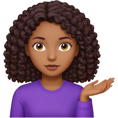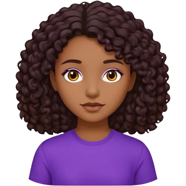 girl with brown skin, dark curly brown hair shoulder length and purple shirt emoji