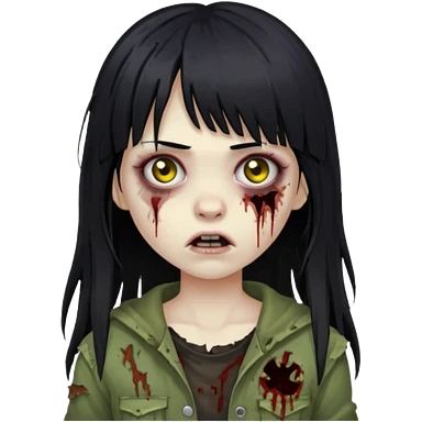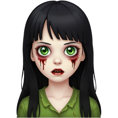 girl zombie with black long hair and bangs emoji | AI Emoji Generator