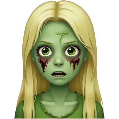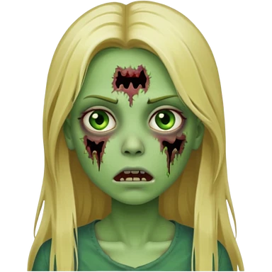 girl zombie with blonde straight long hair green skin and with no angry face and with the mouth closed emoji | AI Emoji Generator