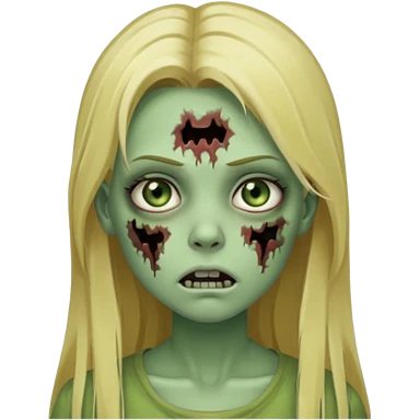 zombie girl with green skin, bruises, blonde long hair with bangs emoji