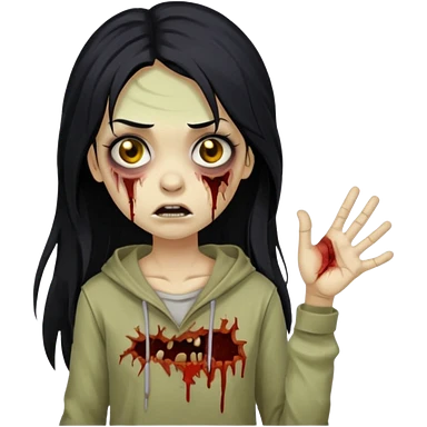 girl zombie with long black hair and beige skin emoji | AI Emoji Generator