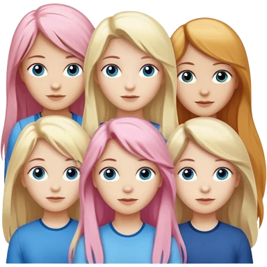 Girlfriend emoji - include 1 white girl with long light pink hair and blue eyes, 1 white girl with brown eyes and medium honey blonde hair, and 2 white girls with brown eyes and long dark brown hair, 1 white girl with blue eyes and light blonde hair, emoji