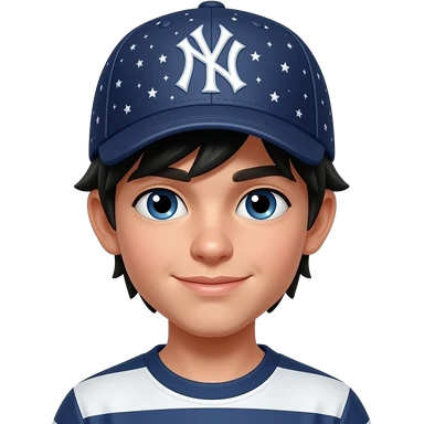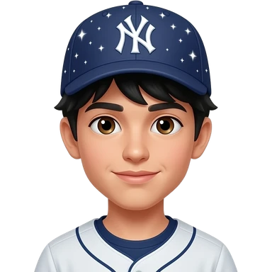 Un joven de aproximadamente 16 años con el pelo negro con una gorra new york con unas chispas emoji