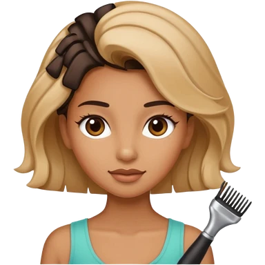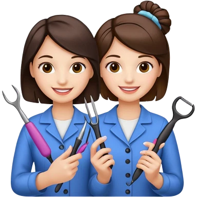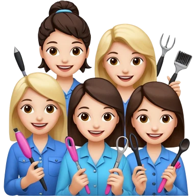 Girls holding hairstyle tools and nails tool emoji | AI Emoji Generator