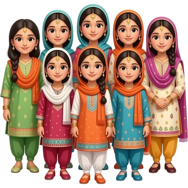 girls at a garden party wearing pastel dresses and holding tulips, one is black, one is blond, one has brown hair, one has red hair emoji