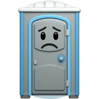Beige Porta potty with maroon top and bathroom symbol emoji