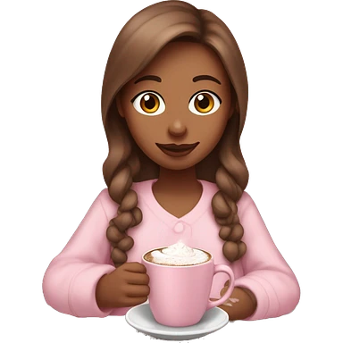 create a brown hair girl with braces in a baby pink night gown and a hot chocolate in her hand emoji