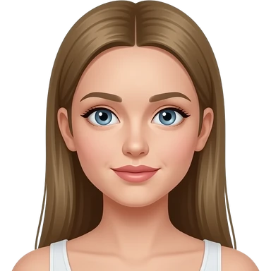 meisje met donkerblond, stijl haar achter haar oren en blauw/grijze ogen. Best volle lippen emoji