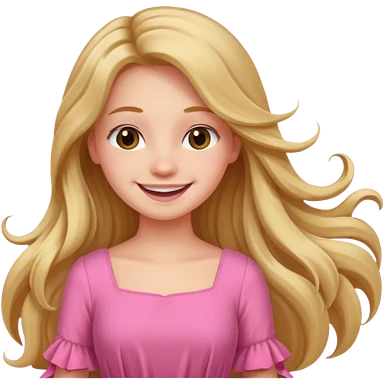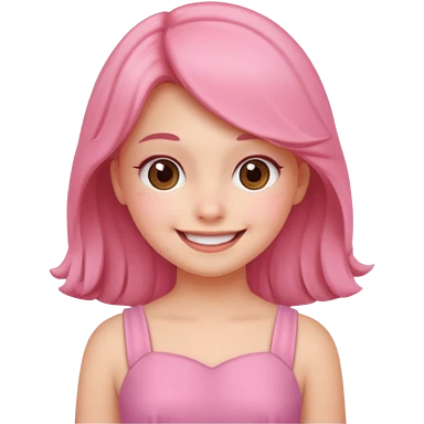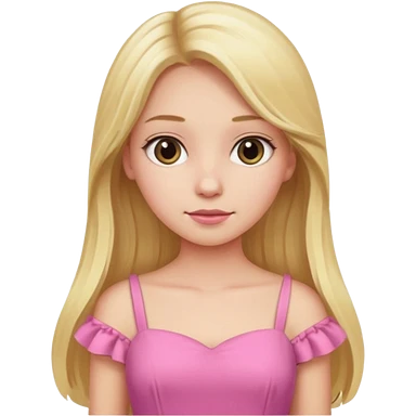 girly girl emoji, pink dress, long eyelashes, smiling, holding a purse emoji