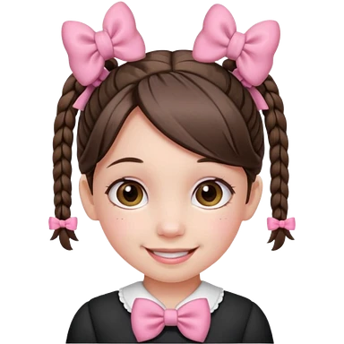 girly girl emoji, wearing a bow, sparkly eyes, making a heart with hands emoji
