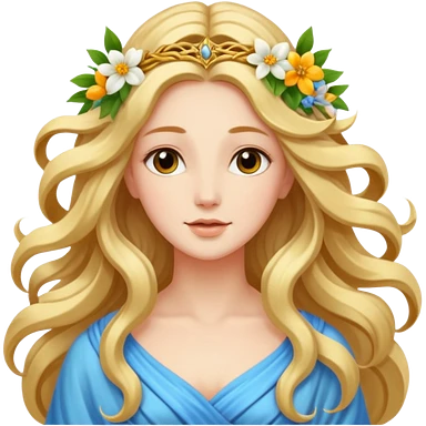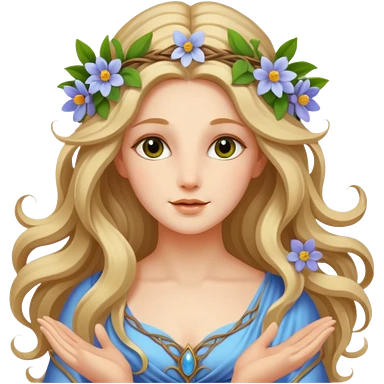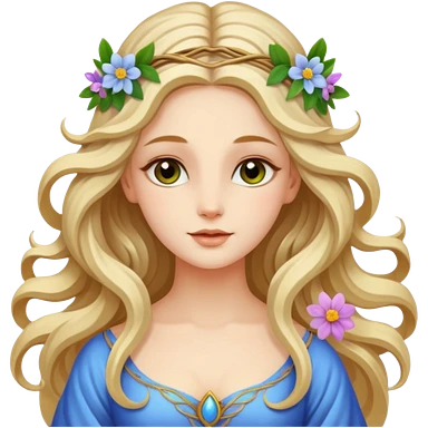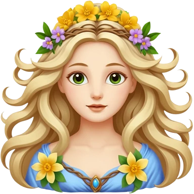 A beautiful goddess Eostre with flowing hair and spring flowers emoji
