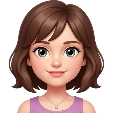 girly lilac shirt light tan , long black hair girl no bangs writing on paper emoji