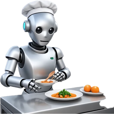 obot chef preparing a gourmet meal in a futuristic kitchen emoji